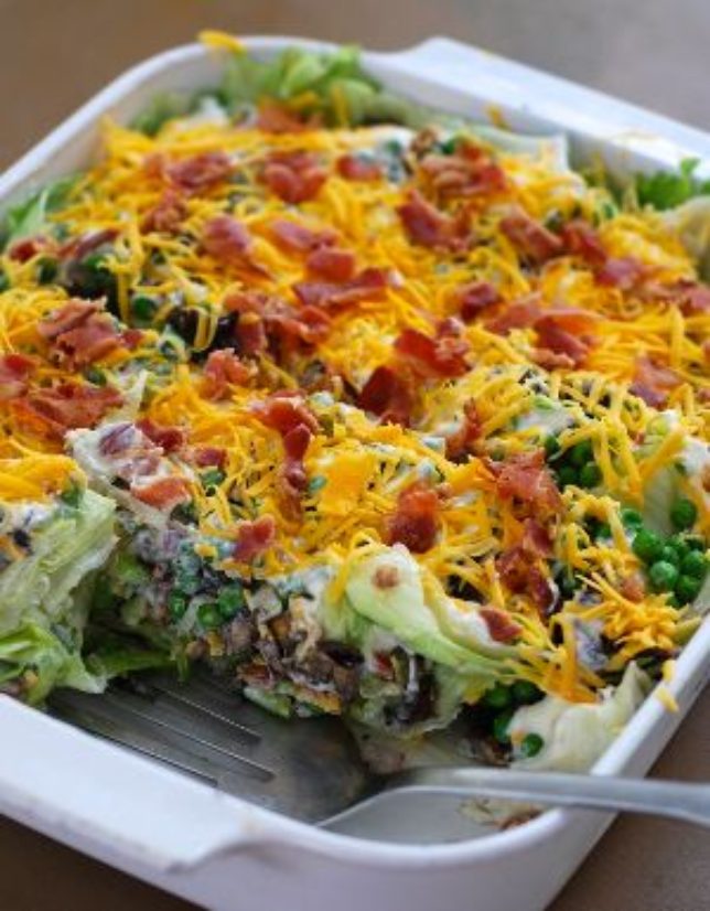 Layered Lettuce Salad With Peas And Bacon. There are any Layered Lettuce Salad With Peas And Bacon in here.